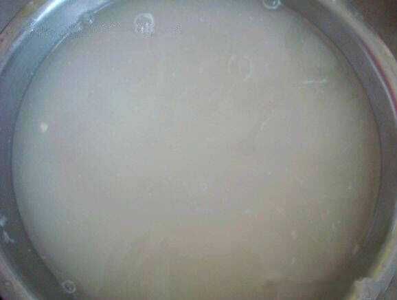 在盆中加入适量清水,再加一勺面粉(平时常用的面粉即可),搅拌均匀。